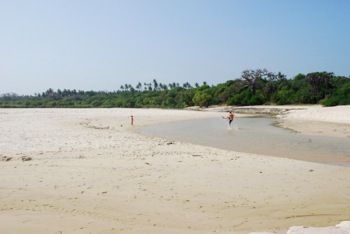 Torstaina kävimme Noelin kanssa tapaamassa vielä viimeisen kerran Seliä sekä Aureliaa. Aurelia työskenteli villalla jonka vanhempamme ja ystävämme vuokrasivat viime joulukuussa. Hän oli yllättynyt vierailustamme ja kaappasi Noelin syliinsä suukottaen. Hän lähetti kovasti kaikille terveisiä. Iltapäivän kuumuus ajoi meidät Kongo joelle uimaan. Noel iloitsi matalassa vedessä muiden lasten kanssa. Ihailimme mangrove metsää heikkadyyniltä joka oli paljastunut veden laskettua. (Tässä kirjoituksessa näet kuvia myöhemmin Kongo joelta.) Mukava uimapaikka, lähellä alueen vanhinta moskeijaa.